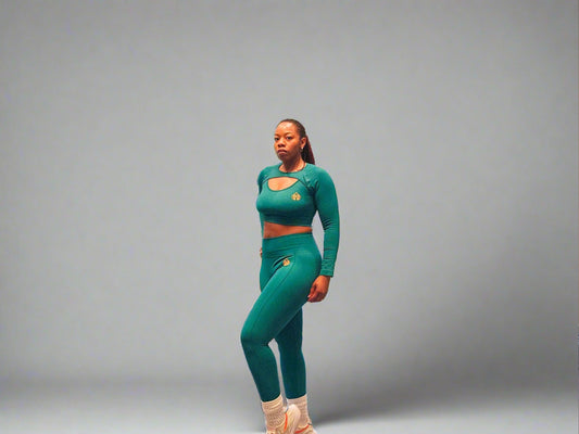 Allure Long Sleeve Crop and Leggings Set-Green
